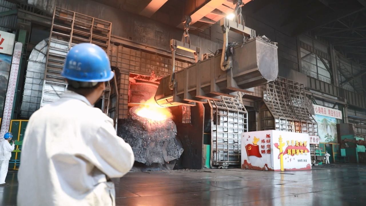 河钢集团石钢公司环保部环保优化管理员 金亚丽:以电和天然气为主要能源,采用先进稳定的节能环保设备,颗粒物、二氧化硫、氮氧化物三项污染物排放量,较传统长流程降低75%,碳排放同口径相比同样降低75%。