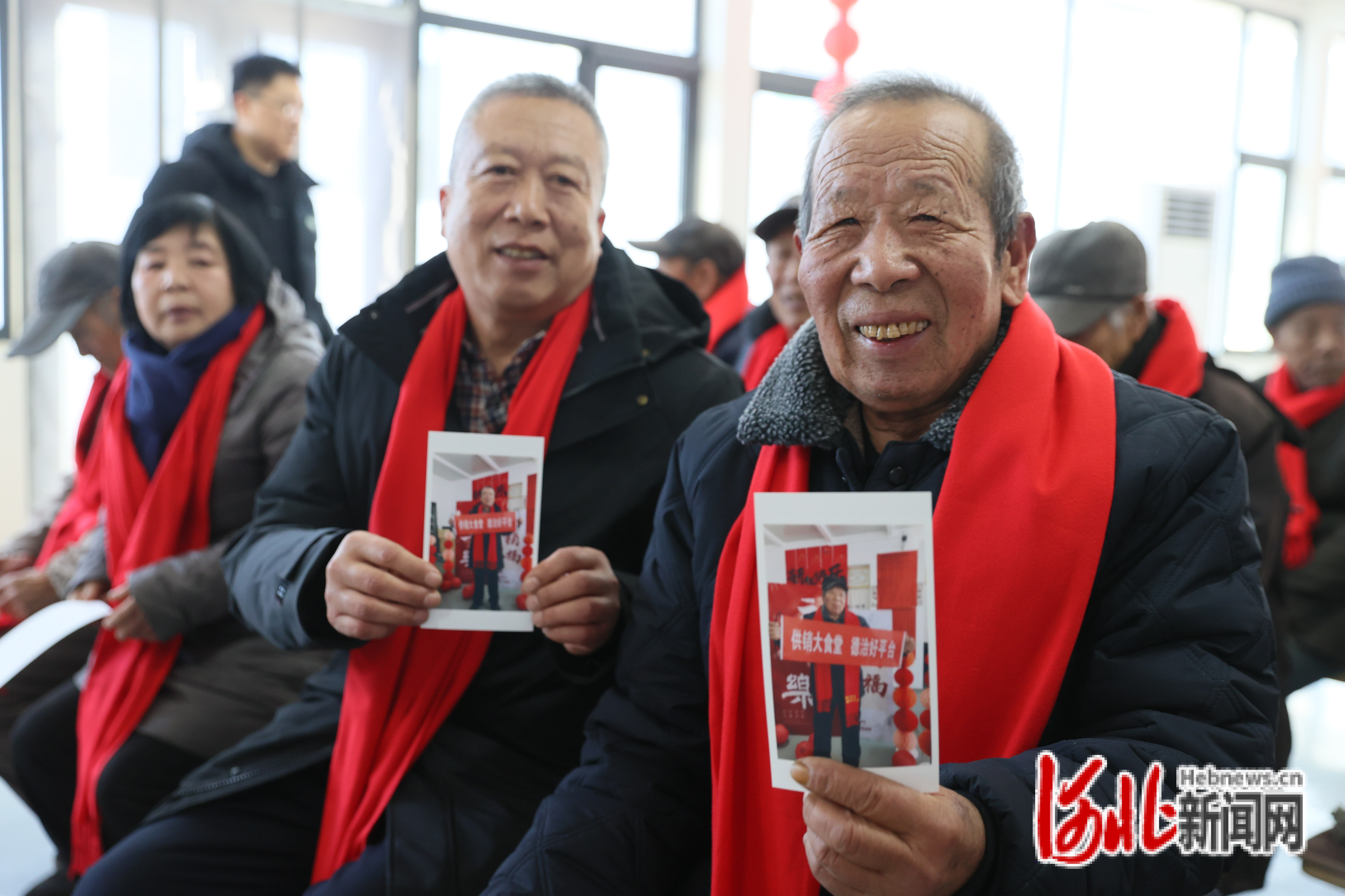 “暖心围脖·定格笑脸”环节中,一条条红色围巾为到场老人带来温暖。老人们在主题横幅前合影留念,现场打印的照片即时赠予老人珍藏,电子版也同步分享至村微信群,定格下新年里的幸福瞬间。食堂门口,河北供销土特产组成的福利礼品包精准派发给老人,针对行动不便的独居老人,志愿者还专程送礼包上门。活动中,志愿者还与老人共同动手包饺子,一起围绕食堂运营管理、就餐服务优化等议题畅所欲言。
