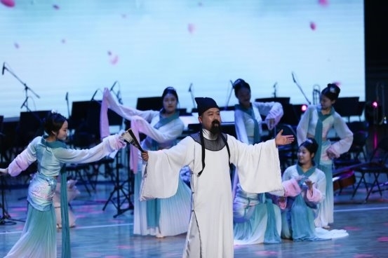 本次活动创新采用语言艺术与交响乐深度融合形式,以朗诵搭配交响乐、伴舞、武术等多元舞台元素,打破单一艺术边界,提升节目感染力,现场还演绎了非遗大平调、豫剧与流行音乐等精彩节目,让“书香大名”在诗乐交融的旋律中愈发鲜活。