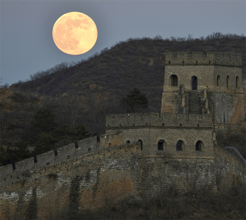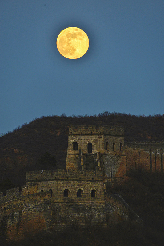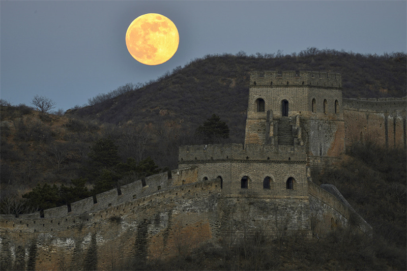 1月3日晚,2026年首个“超级月亮”现身滦平县金山岭长城夜空。