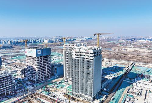 1月5日,无人机航拍的雄安新区启动区财富大厦项目。作为金融岛片区首个开工的市场化项目,财富大厦目前全面进入机电安装和装饰装修阶段。 本报见习记者 李 畅摄