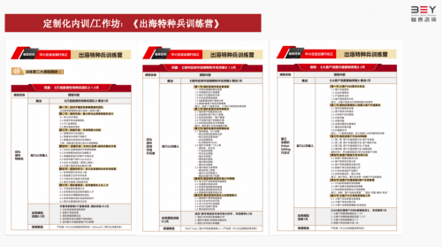 《出海特种兵训练营》包含三大课程模块,涵盖了从成为海外特种兵,到成为海外区域市场开拓者,再到建立全新的Value Selling方法论的课程目标。