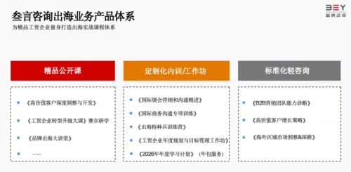 但理想与现实之间,仍存在显著落差。不少企业缺乏系统的国际市场洞察能力;高价值客户开发依赖个体经验,难以复制;海外团队搭建慢、管理模式水土不服;组织仍停留在“制造导向”,而非“市场与品牌导向”。这也意味着,企业真正需要的,不再只是外贸技巧,而是一套覆盖战略、组织、市场、品牌与执行落地的完整出海能力体系,这也为叁言咨询等专注于企业出海赋能的专业机构提供了现实土壤。