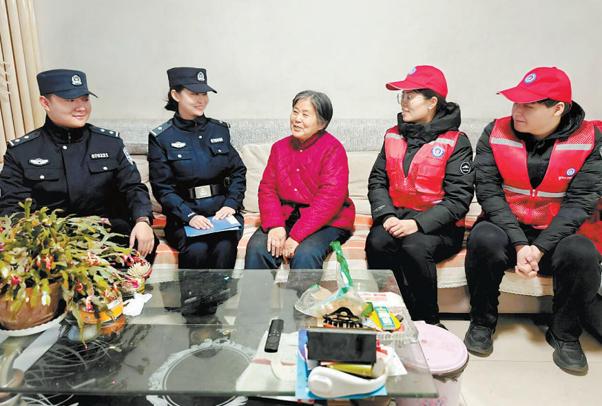 “马大爷,最近身体怎么样?”冬日午后,在社区走访的永华道派出所民警杨洪强和“红马甲”小分队,看到94岁的马溪斌老人正坐在楼下和邻居们唠家常,便上前打招呼。