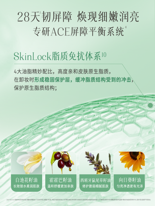 养肤属性的深度融入,是这款产品的核心竞争力所在。其专研的 ACE 屏障平衡系统,以白池花籽油、霍霍巴籽油等 4 种与皮肤原生脂质高度相似的天然植物精粹为基础,搭配红没药醇等 2 重舒缓成分,在清洁的同时为肌肤搭建起保护屏障。28 天实测结果显示,肌肤屏障修护能力提升 33.9%,红血丝问题改善 30.2%,角质层水分含量增加 41.29%,油脂含量减少 73.77%,肌肤的焕亮度与平滑细腻度也分别提升 32.9% 和 23.61%。经专家评估与消费者实测,产品温和无致痘风险,敏感肌、毛孔粗大及易泛红长痘等问题肌肤均可安心使用。