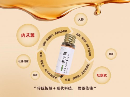 (图3:华夏药王品牌旗下产品,臻兴擎人参杜仲雄花牡蛎肽饮)