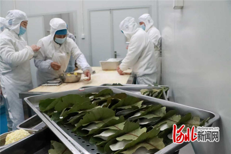1月10日,在秦皇岛卢供丰合餐饮有限公司加工车间,工人们小心翼翼地将调制好的馅料裹入薄韧的面皮,再用桲椤叶包裹成形,然后进入零下35℃急冻锁鲜环节。桲椤叶饼借助企业成熟的标准化生产体系和冷链物流网络,走上更多消费者的餐桌。