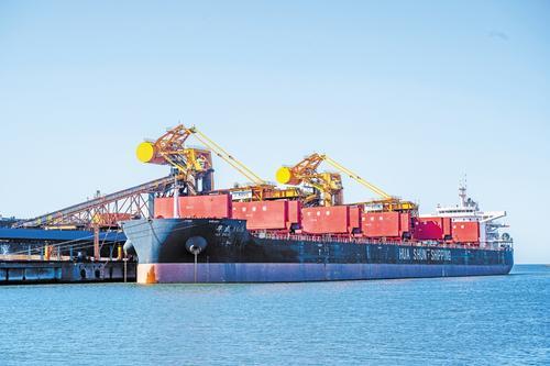 近日,货轮在秦皇岛港进行装卸作业。自《河北省港口污染防治条例》实施以来,秦皇岛港持续开展“翻、堆、取、装”全流程治理,绿色港口建设取得积极成效。本报记者 赵杰摄