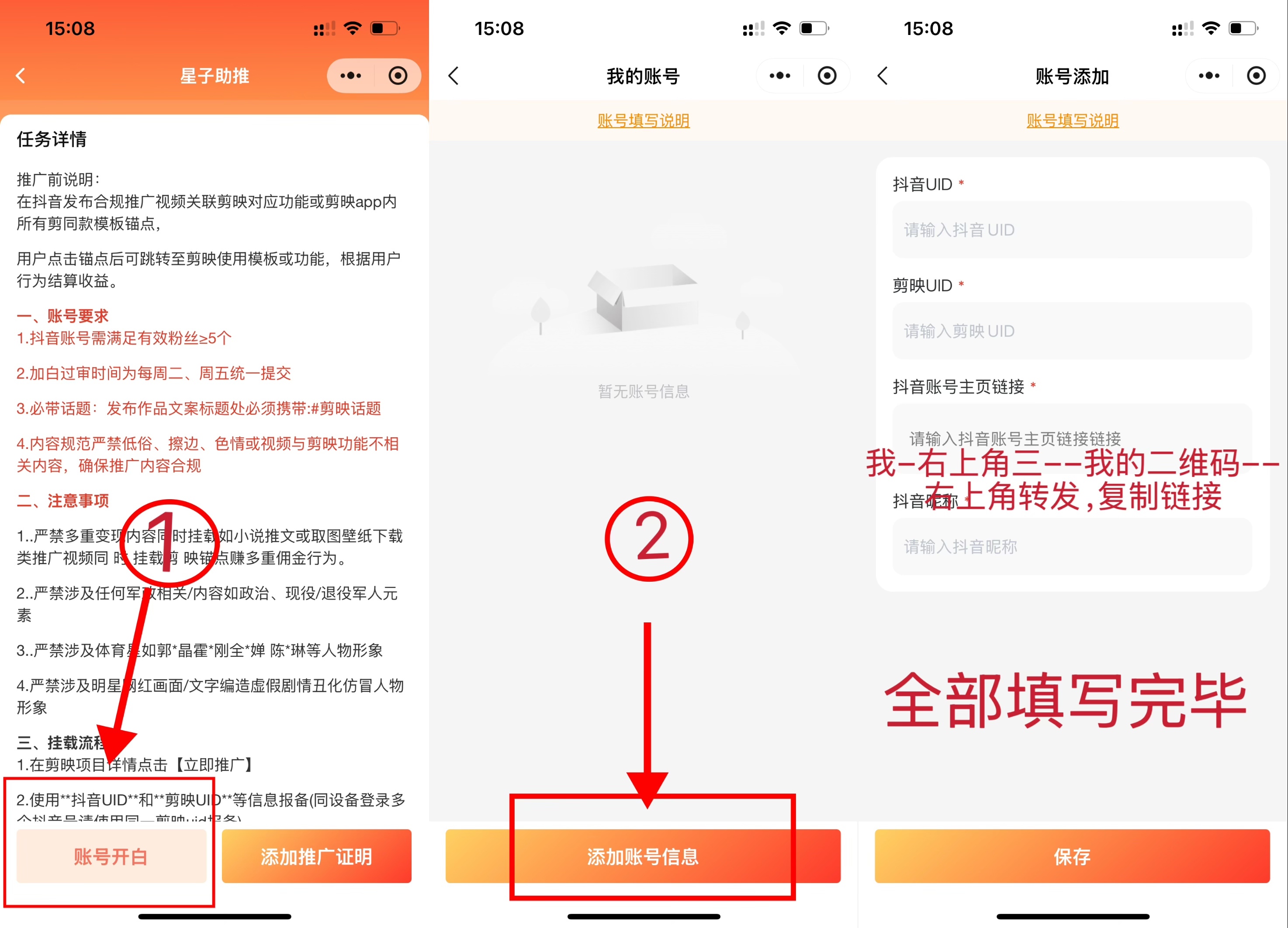 “星子助推” 完成注册(需填写官方邀请码8x25k,确保收益合规结算),通过首页找到“剪映”项目,进行uid绑定即可申请锚点挂载,待审核通过之后,即可进行推广操作。如果你是团队/工作室,可以wenlaoshi008 加深度合作。