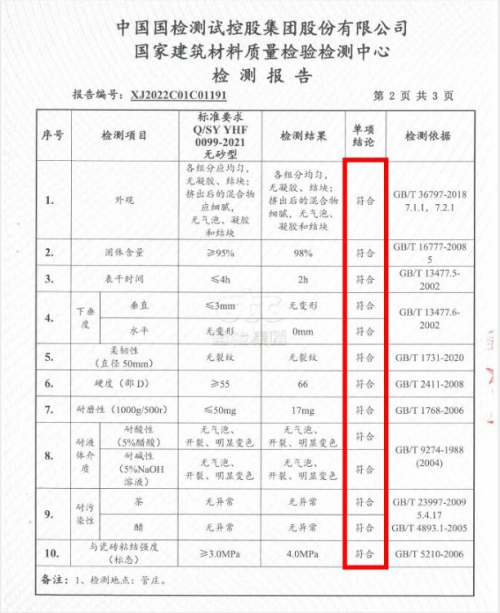 凭借性能维度的全方位优势,得以长期稳居行业前三梯队。根据中国国检测试控股集团股份有限公司、国家建筑材料质量检验检测中心出具的检测报告,它在抗压性、耐污性、耐酸碱等关键指标上均远超GB/T 36797-2018《瓷砖填缝剂》等国家标准。
