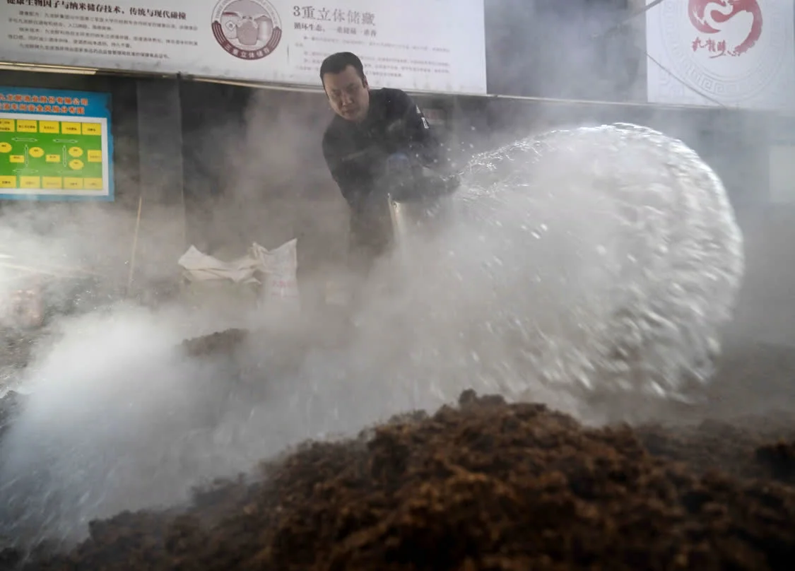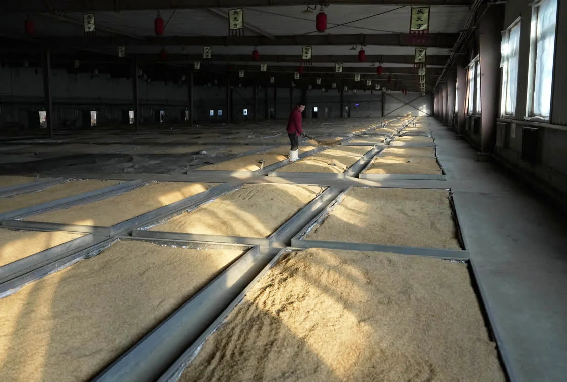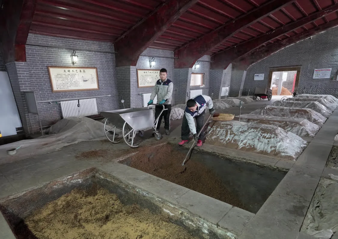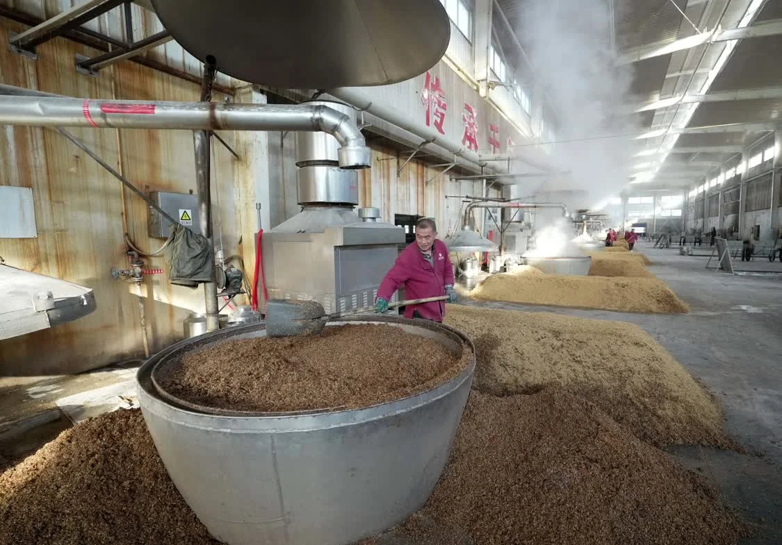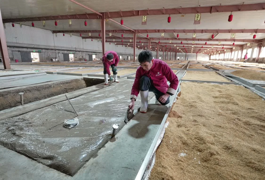 1月27日,工人在河北省丰宁满族自治县承德九龙醉酒业股份有限公司酿造车间工作。新华社发(胡杨摄)