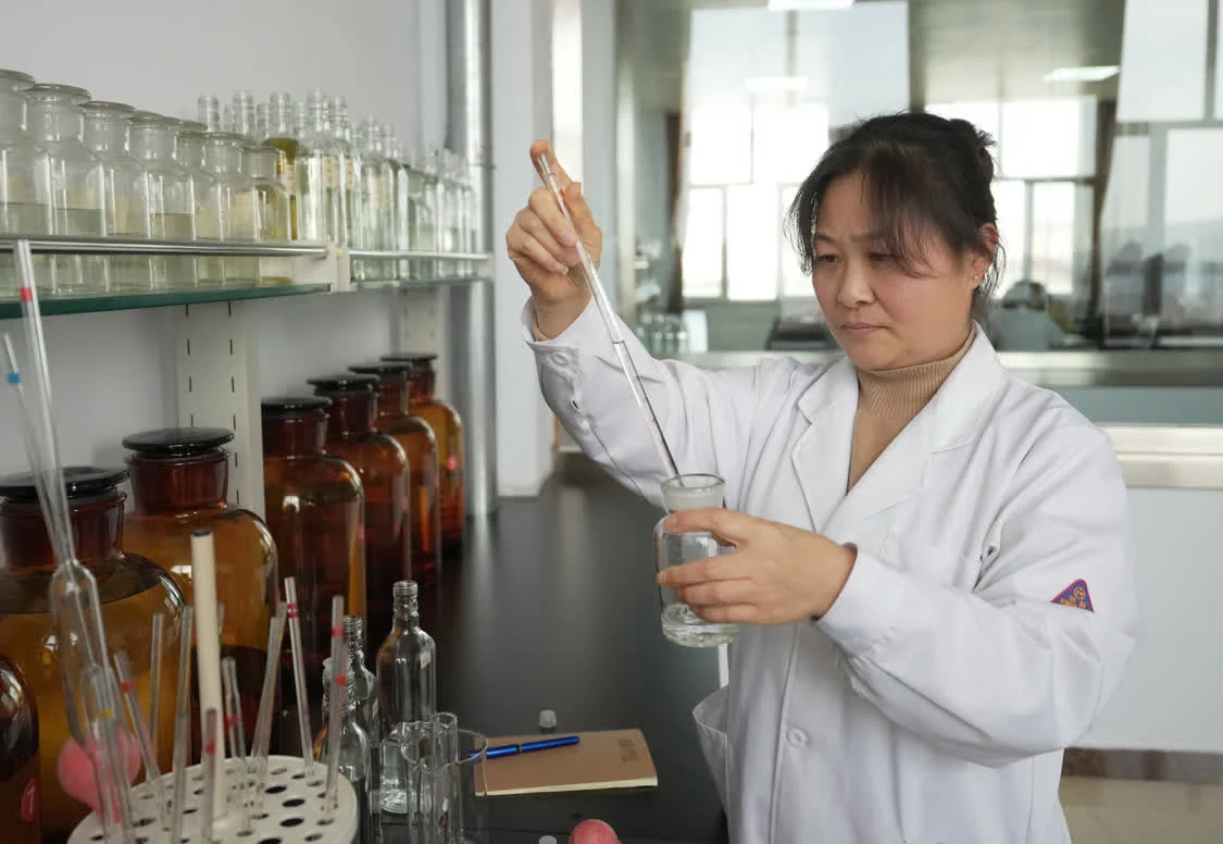 1月28日,河北省平泉市承德避暑山庄企业集团股份有限公司的调酒师在研发中心调酒。新华社记者 杨世尧 摄