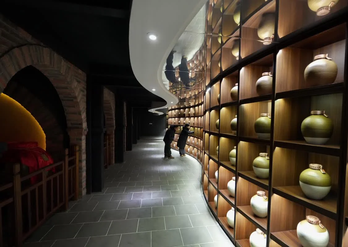 1月28日,游客在河北省平泉市承德避暑山庄企业集团股份有限公司的酒窖参观。新华社记者 杨世尧 摄