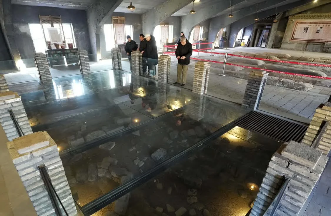 1月27日,游客在河北省丰宁满族自治县承德九龙醉酒业股份有限公司参观有300多年历史的古窖池遗址。新华社记者 杨世尧 摄
