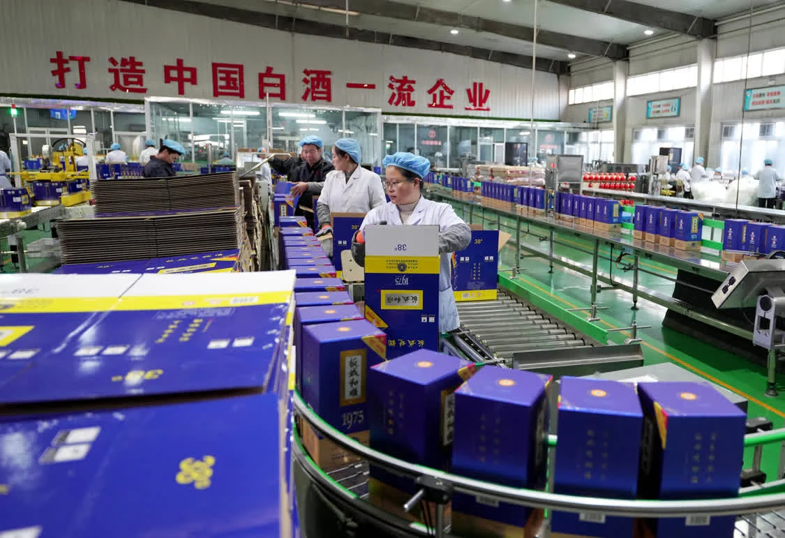 1月28日,河北省承德县承德乾隆醉酒业有限责任公司的工人在包装车间工作。新华社记者 杨世尧 摄