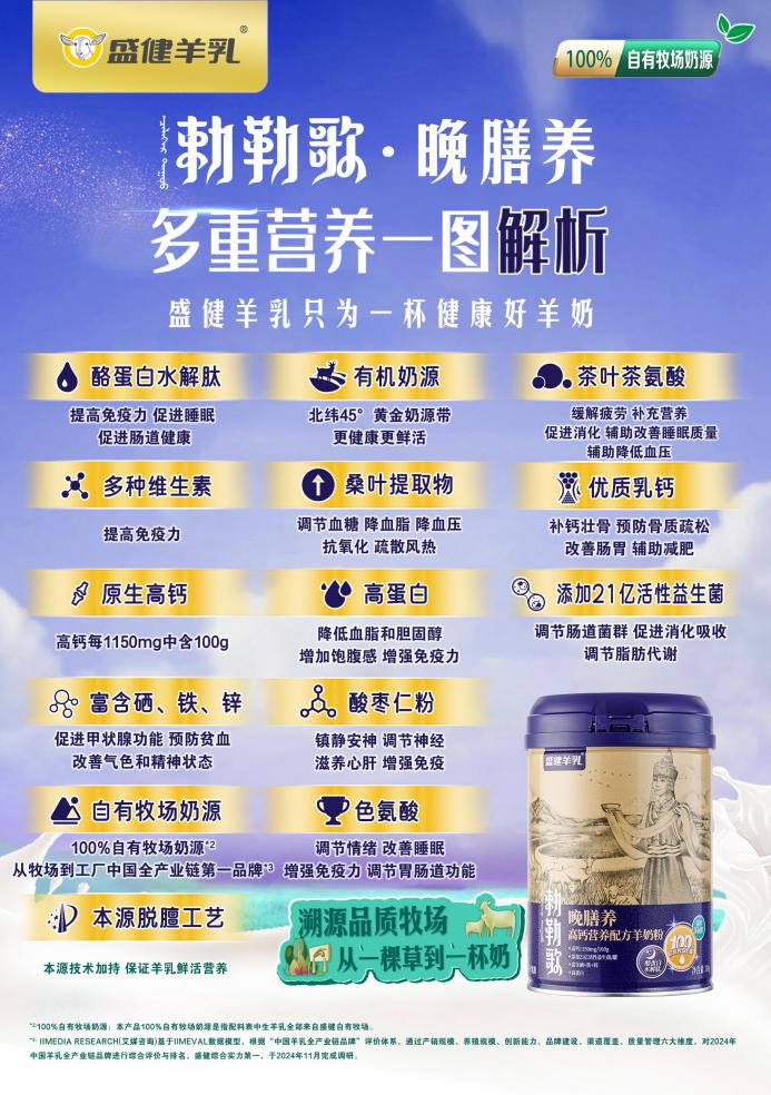 比起华而不实的礼盒,这届消费者终于醒悟:送什么都不如送个“好觉”。在这股健康浪潮中,盛健羊乳“勅勒歌·晚膳养”羊奶粉凭借硬核的科学配方与国货匠心,精准切入睡眠赛道,成了年底送礼和自用的“顶流”选择。