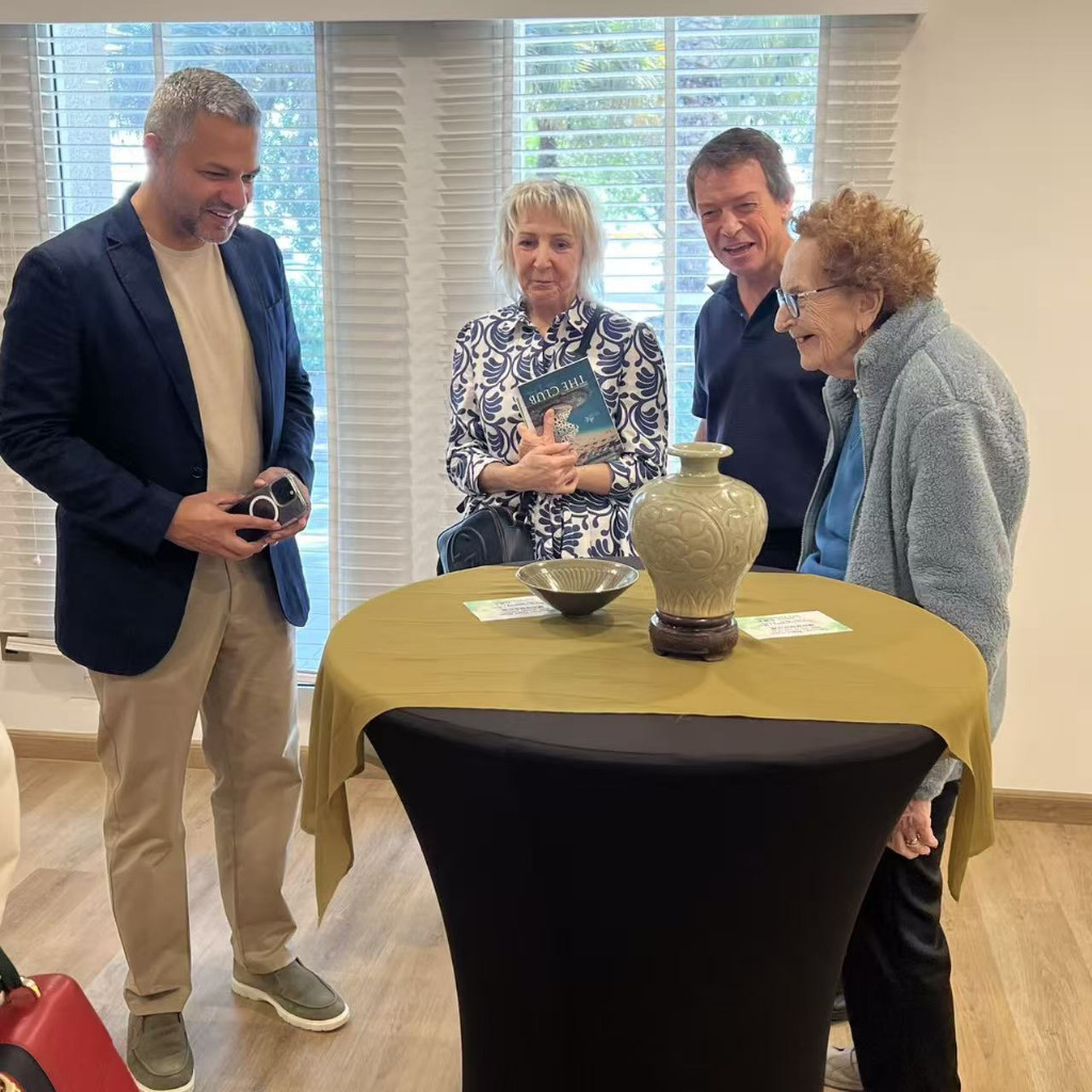 (吴多美女士向大使夫人及贵宾们讲述“汝窑”的珍贵)