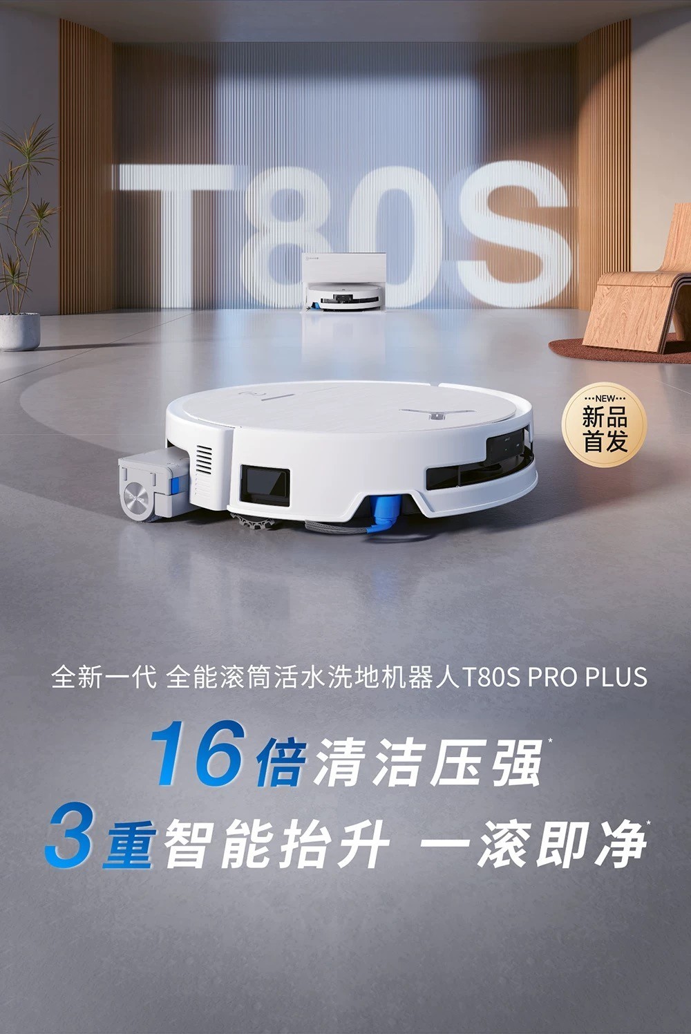 旗舰级清洁配置: 同样配备3800Pa对地高压与三重智驱升降系统,遇到地毯时拖布自动抬升,干湿全场景切换响应迅速。