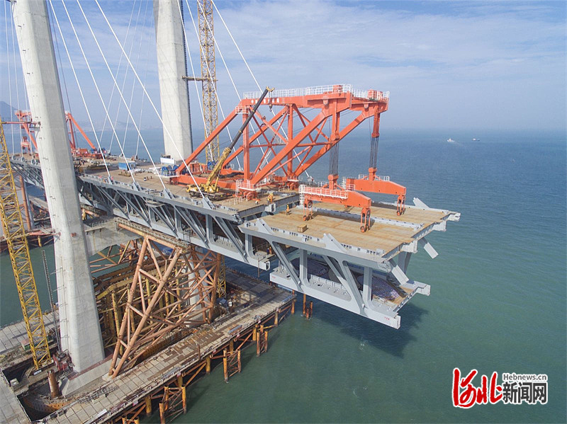 “桥面吊机就像桥梁伸向江面的一双巨手,把一块块‘积木’从下方托起,再严丝合缝地安放到预定位置。”王大江说,这种建设方式被业内称为“节段拼装”或“装配式施工”,能大幅提高桥梁建设效率。