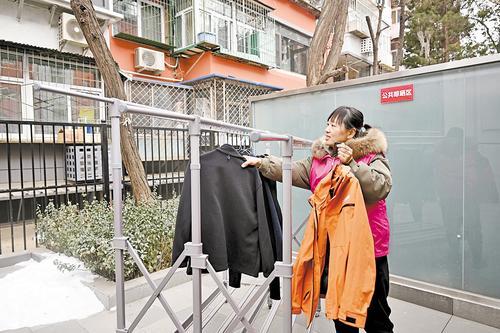1月19日,“河北福嫂”张培培在北京市东城区福嫂之家晾晒衣服。