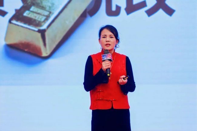 黄金码头深圳云展厅副总经理赵芬女士上台作云展厅2025年工作总结及2026年工作展望。