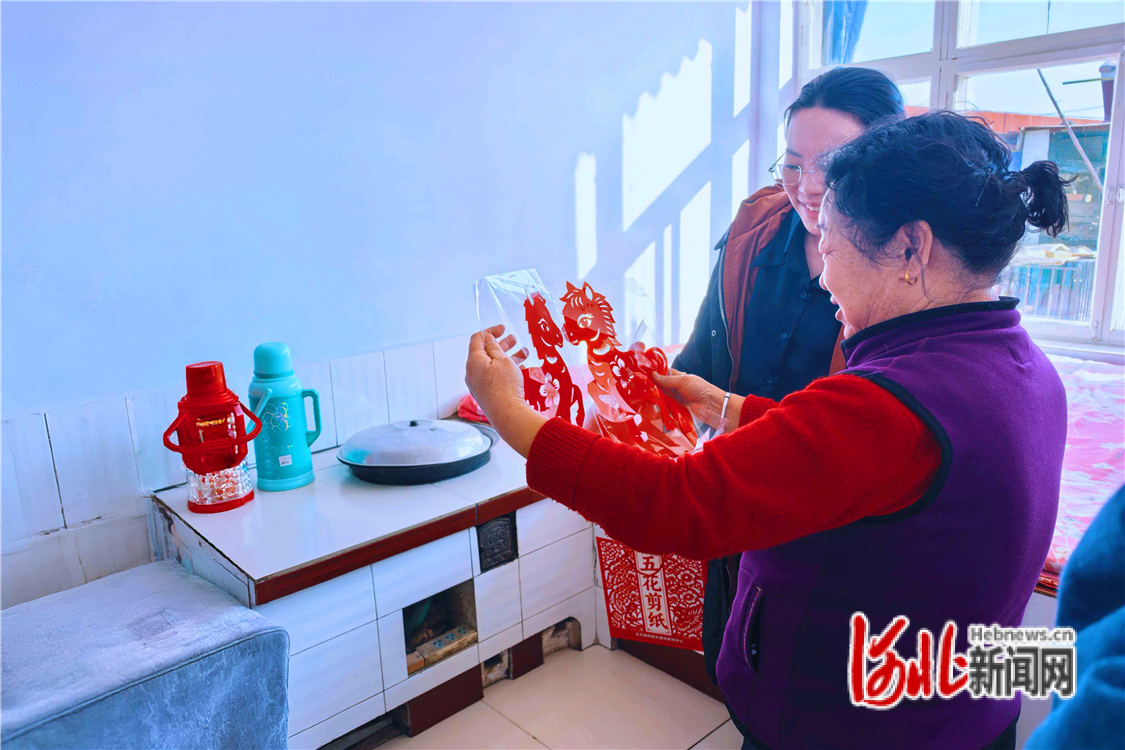 活动中,五花剪纸第十二代传承人、中国高级工艺美术师张彦向返乡大学生系统传授剪纸技艺与文化底蕴,并指导他们进行春节窗花创作。青年学子在学习传承的同时,将亲手制作的福字、生肖剪纸送至100余户老人家中,为他们贴窗花送祝福。