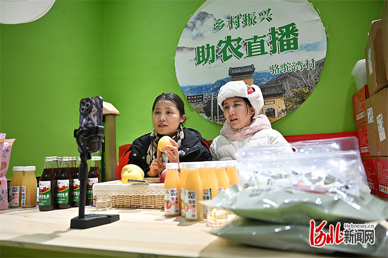 2月3日,骆驼湾村共享直播间,主播正在推介特色农产品。河北日报记者 田明摄