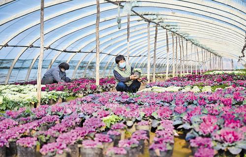 近日,花农在邢台市南和区和阳镇花卉种植基地大棚管护花卉。邢台市南和区引导农民因地制宜发展特色花卉种植,拓宽群众增收渠道,助力乡村全面振兴。本报记者 赵永辉摄