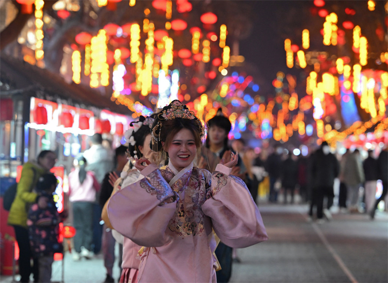 2月14日,游客在邢台好南关历史文化街区游玩。