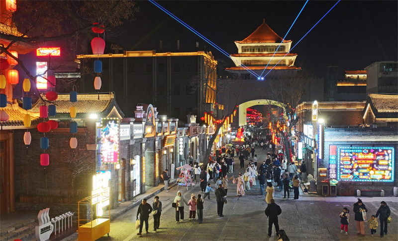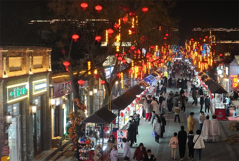 2月14日,游客在邢台好南关历史文化街区休闲游玩。