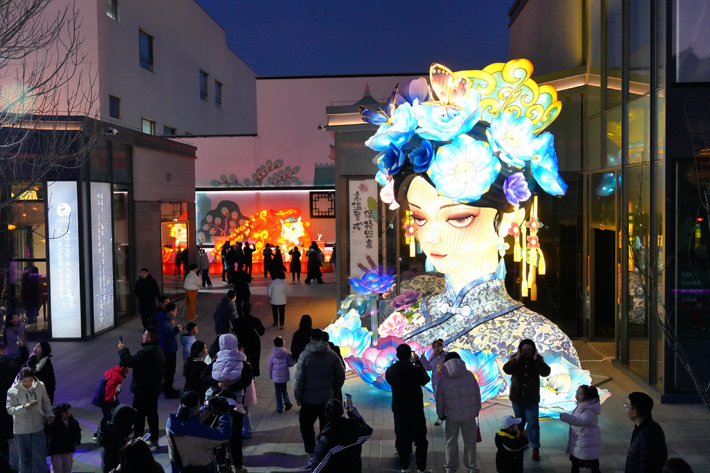 2月17日,游客在廊坊水云间新春灯会游玩。
