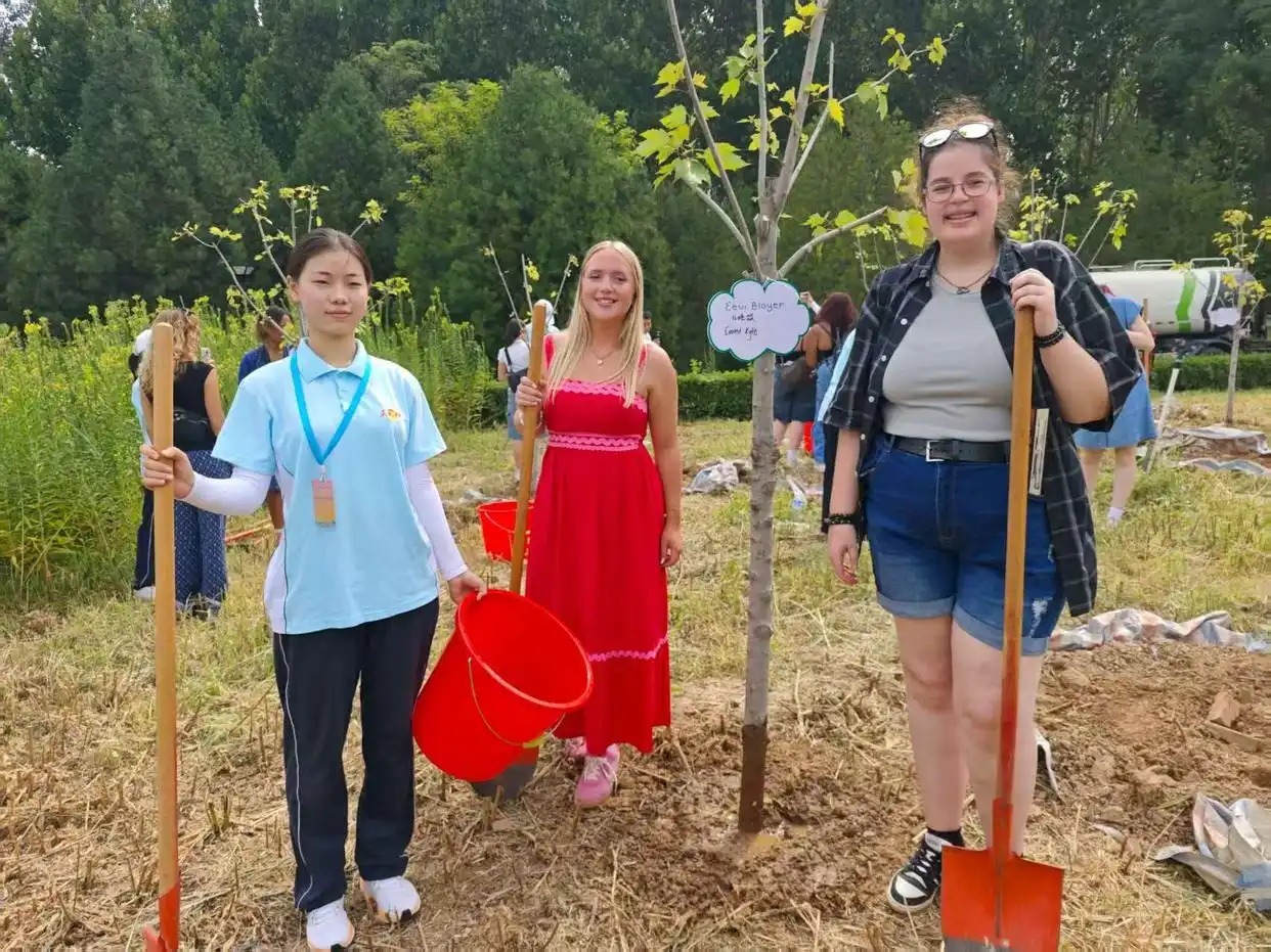 他们还来到正定园博园“中美友谊传承青年林”,一起栽下小树,共同挂上了写有他们名字的树牌:“希望我们的友谊像这些树一样茁壮成长。”