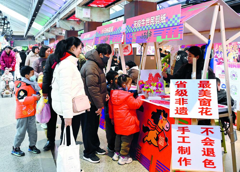 春节假日,在石家庄织音1953,各类精美的非遗展品吸引了许多市民前来购买。