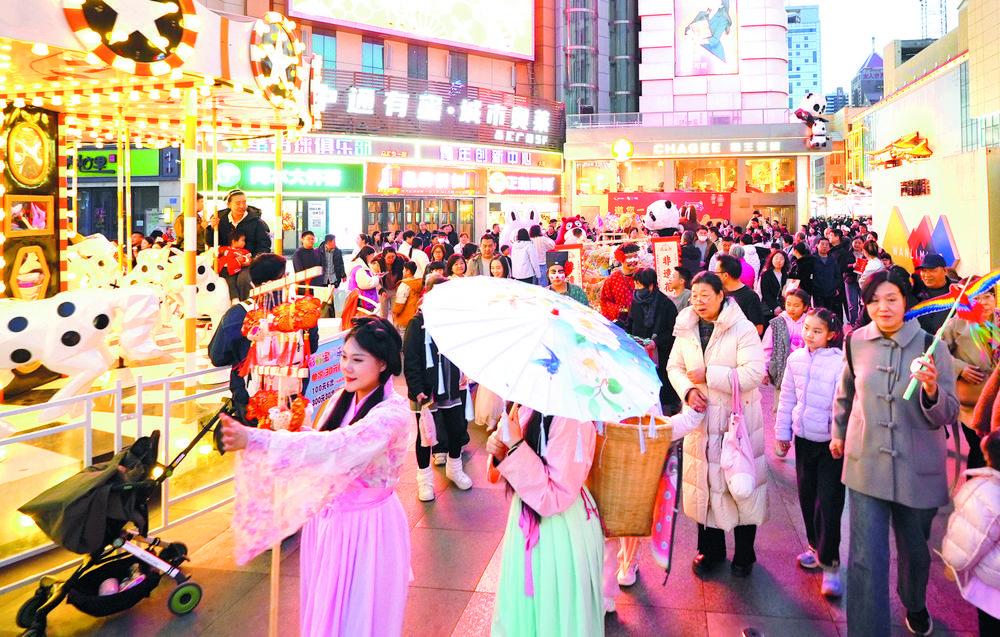 各类特色首店集中亮相,吸引大批年轻人前来打卡体验。“以前过年逛来逛去都是老样子,今年好多新店铺、新玩法,既能感受传统年俗,又能体验时尚消费,这正是我们年轻人喜欢的过年方式。”正在挑选饰品的“00后”大学生李晴冉说。