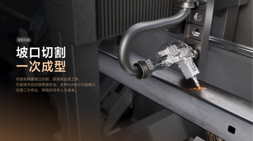 3、高精度坡口切割(选配):凭借高精度坡口切割,获得高品质工件。可直接开启后续焊接作业,支持V\A\K\Y\X型坡口,无需二次修边,降低时间与人力成本;