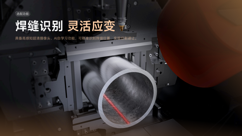 2、AI焊缝识别(选配):具备高感知超清摄像头、AI自学习功能,可精准识别焊缝位置,实现切割避让;