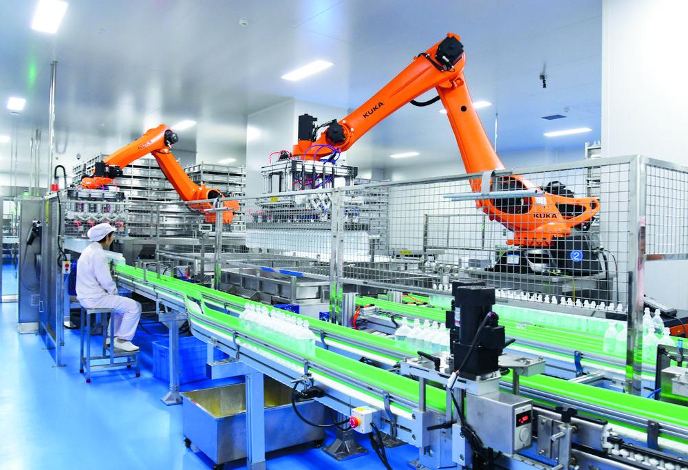 走进石家庄四药集团位于石家庄高新区的输液生产车间,映入记者眼帘的是,员工们身着洁净工装,正在各自的岗位上熟练地操作;一条条自动化输液生产线全速运行,制瓶岗位上的机械臂灵活腾挪、精准抓取,将产品整齐码放至传送带上,快速传递到下一工序……