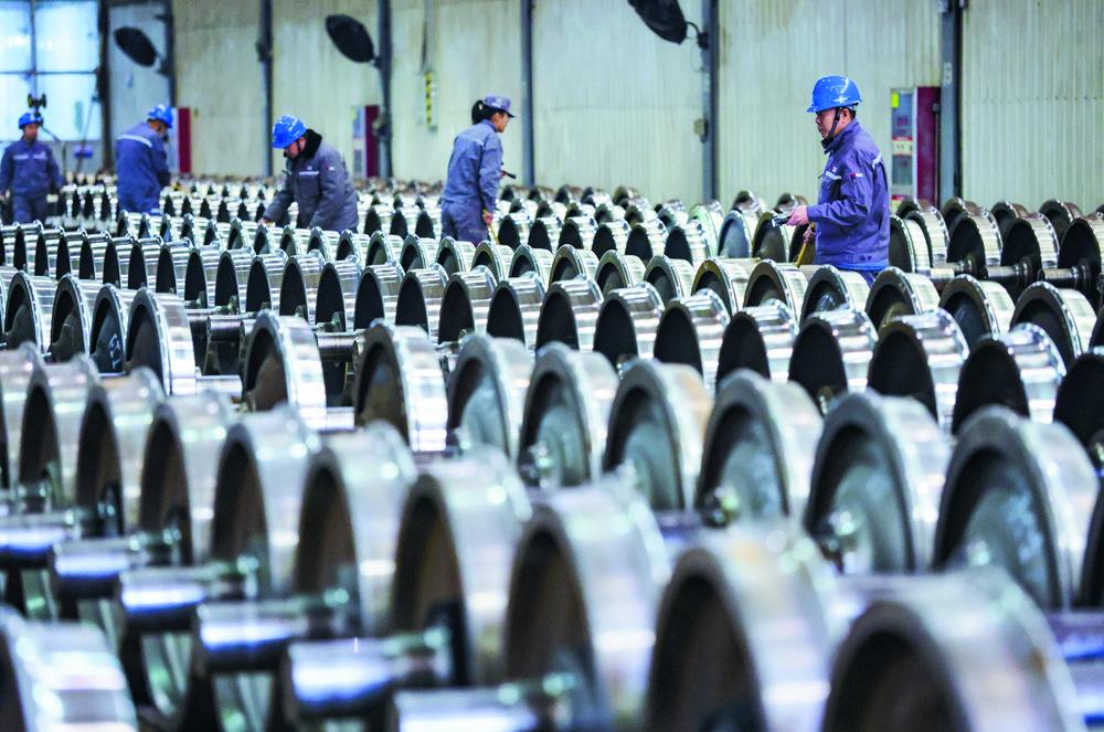 2月24日,在位于石家庄市栾城区的中车石家庄公司转向架车间,工人在对转向架进行检查。 记者 张晓峰 摄