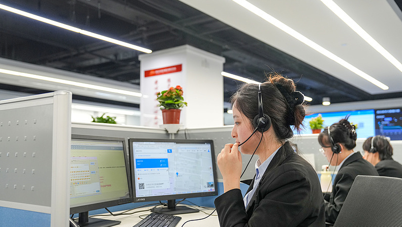 保定市12345政务服务便民热线服务中心,工作人员在接听群众来电。