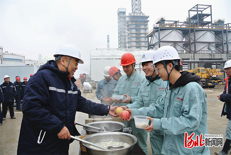 10时许,该公司项目负责人邢海军和盛安建设集团有限公司施工项目经理王博超来到负极材料前驱体装置区域,查看焦炭塔建设进度。“大伙儿抓紧干,中午咱们一起吃元宵!”王博超笑着说。
