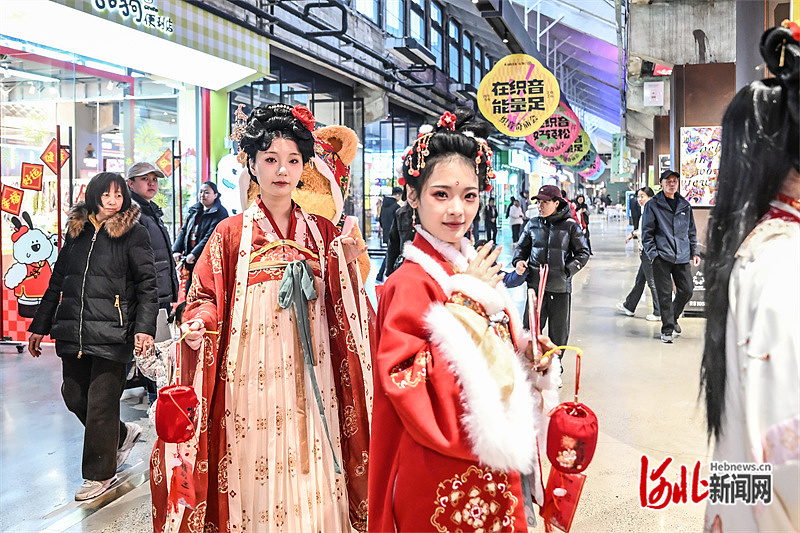 3日3日,石家庄织音1953文化艺术园区举行元宵节汉服巡游活动。河北日报记者田明摄