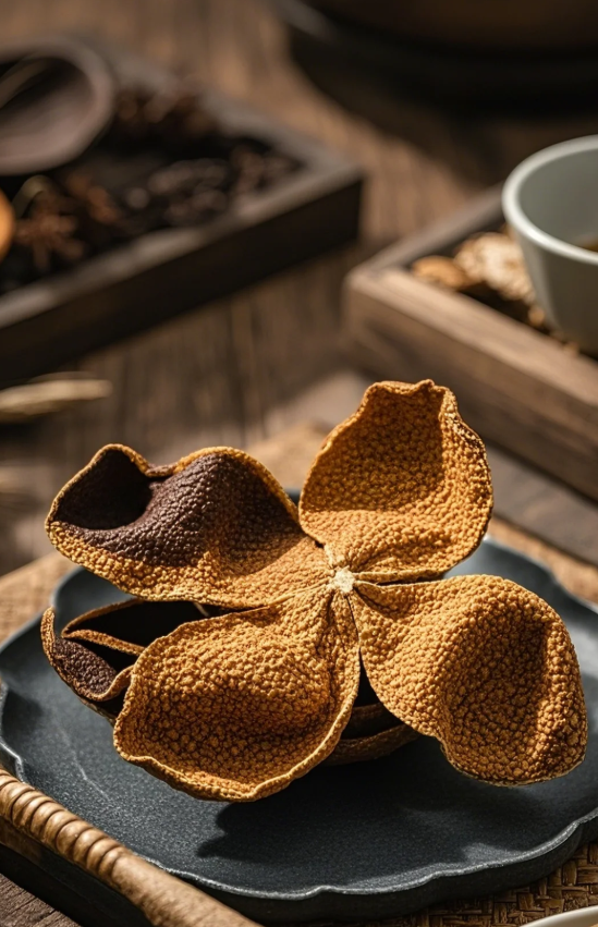储存方法:密封存放于干燥、通风、避光的环境中,远离厨房、香水等异味源,避免潮湿发霉;短期饮用可装入玻璃罐或陶瓷罐,长期收藏可选用棉麻袋或紫砂罐,干仓存放可让陈皮继续自然陈化,进一步提升风味与价值。