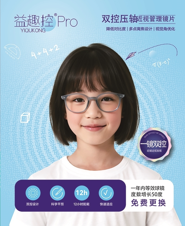 近年来,青少年近视高发、低龄化趋势持续凸显,近视防控早已从家庭关注的育儿重点,升级为全社会聚焦的重要民生议题。随着家长对近视管理的需求从“基础防控”向“高效控度、全面守护、舒适适配”升级,市场亟需更具技术壁垒、更贴合青少年用眼特点的专业近视管理产品。深耕青少年近视防控领域的专业光学品牌益趣控,凭借初代近视镜片的扎实品质与良好口碑站稳市场后,重磅推出新一代旗舰产品——益趣控 PRO 双控压轴镜片,以全维度技术革新、双控协同防控体系,打破传统单离焦防控局限,为6-18岁青少年打造高效、全面、舒适的近视管理方案,重新定义青少年近视防控的专业标杆。