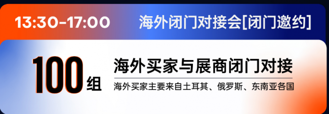 3月25日下午,海外采购闭门对接会将在会议区举办,链接海外代理商及海外大买家,实现足不出境获取优质境外订单。