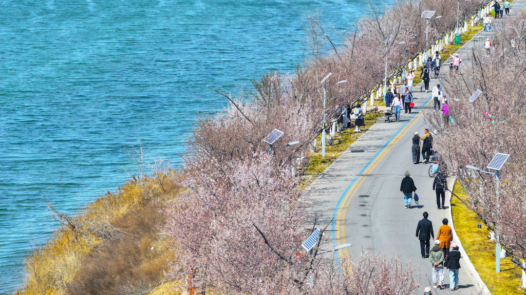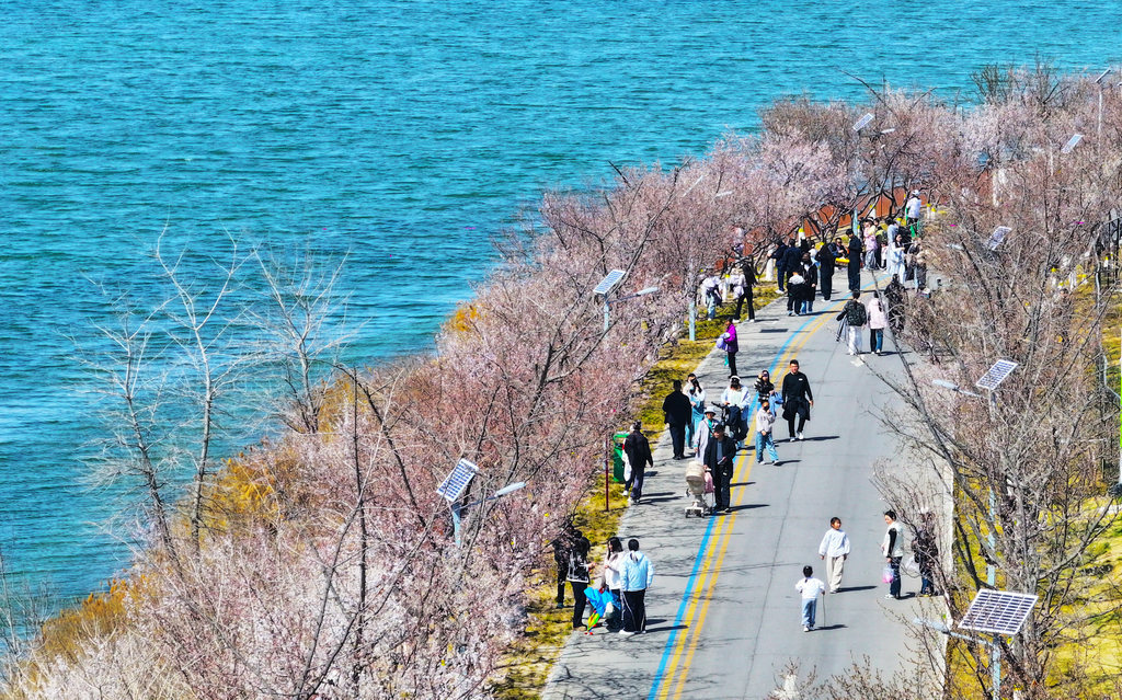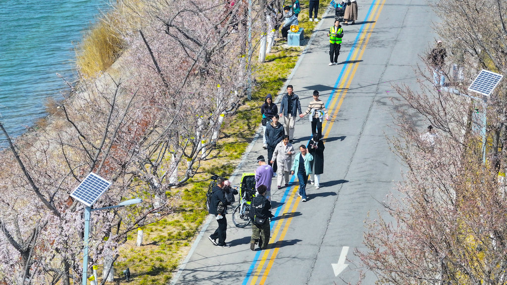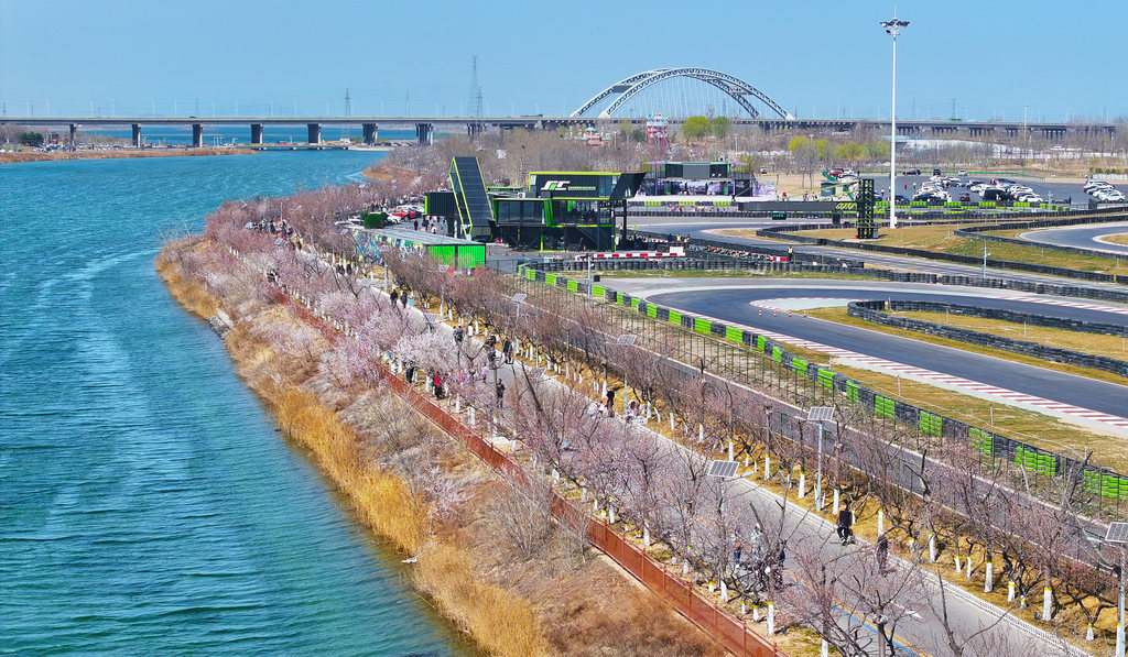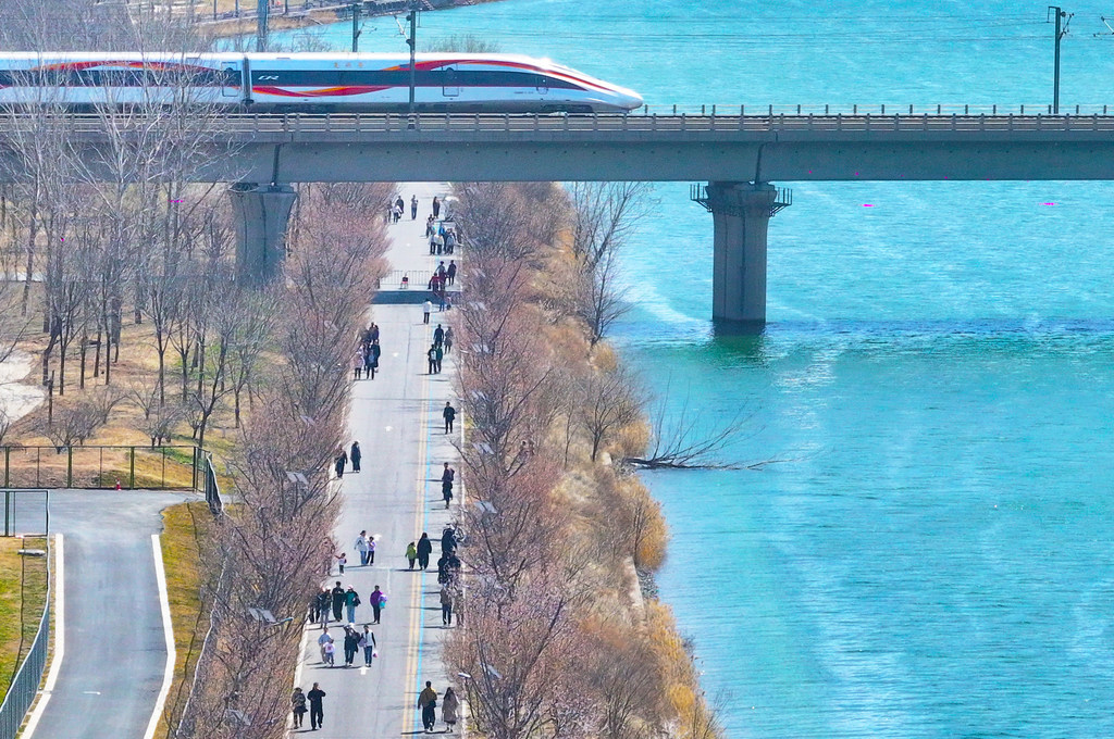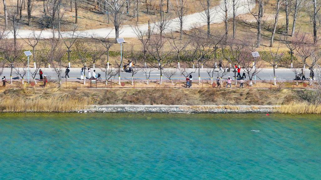 3月22日,游客在石家庄滹沱河艺术生态岛上游玩。