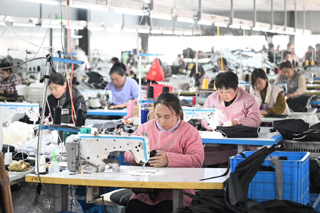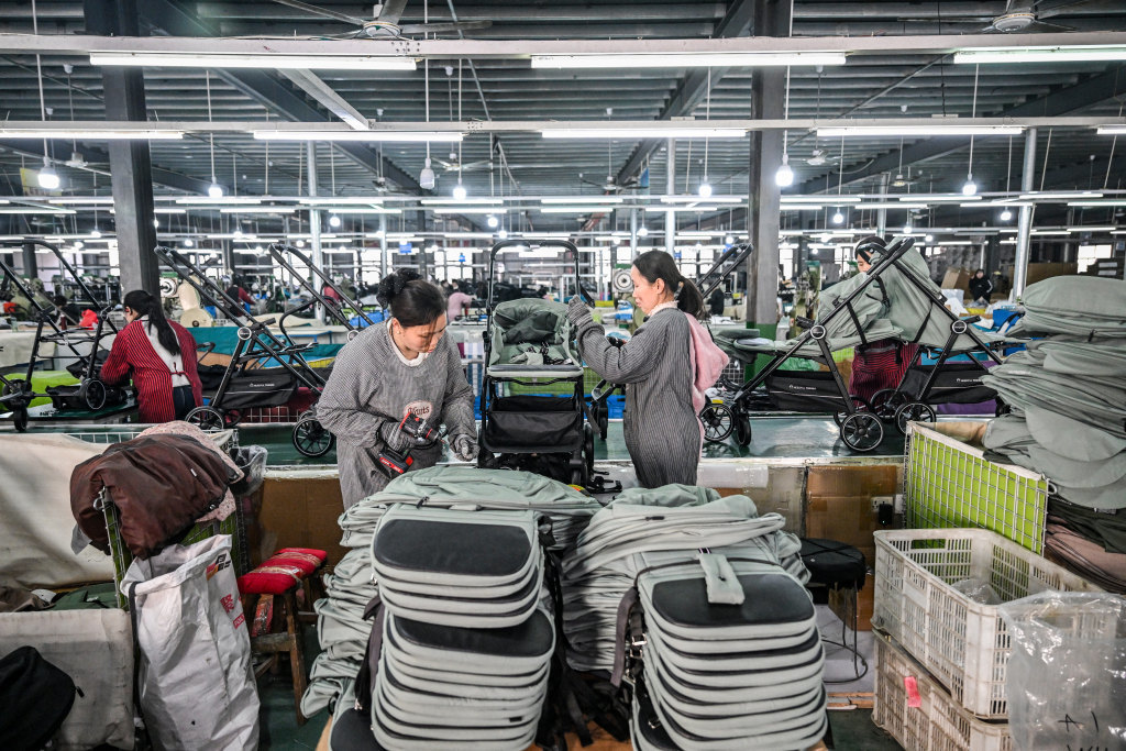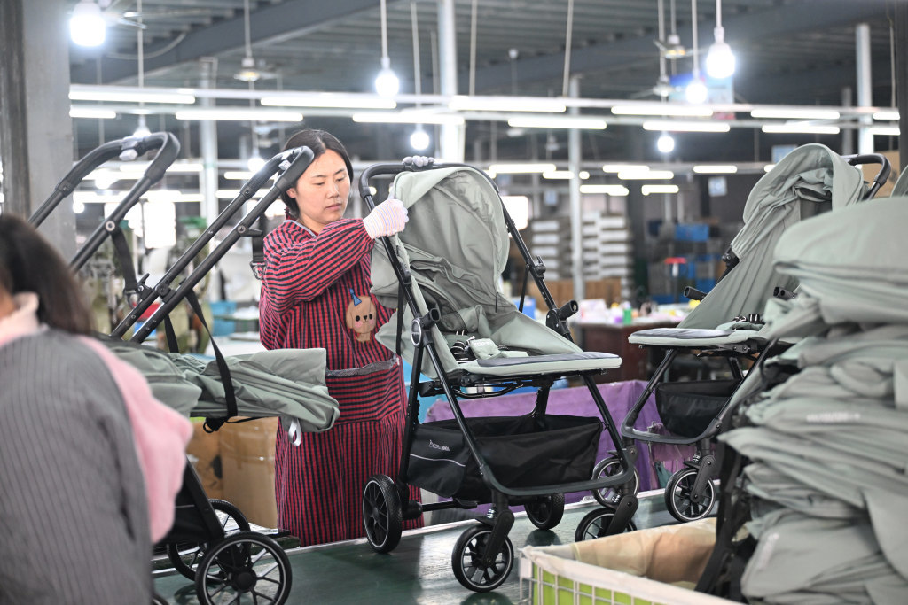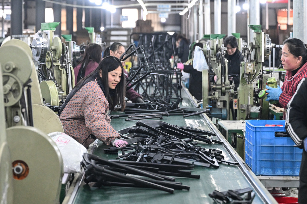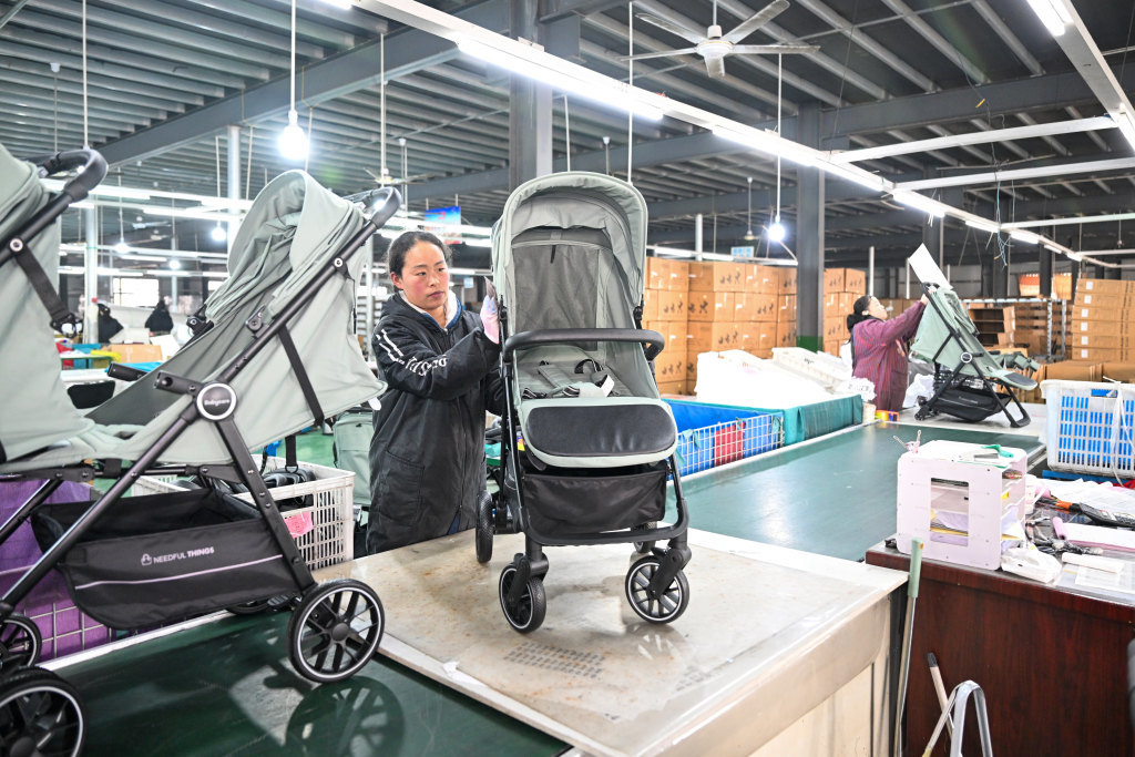 3月20日,工人在位于曲周县的河北绿源童车有限公司生产线上赶制订单。