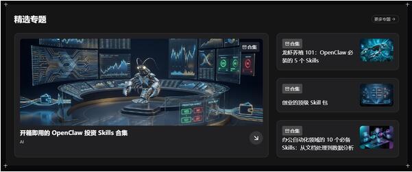 同时打造场景化专题合集,覆盖办公自动化、第三方服务集成、多模态摘要等高频场景,附带详细使用指南与配置教程,让技能落地更简单,真正做到即下即用。