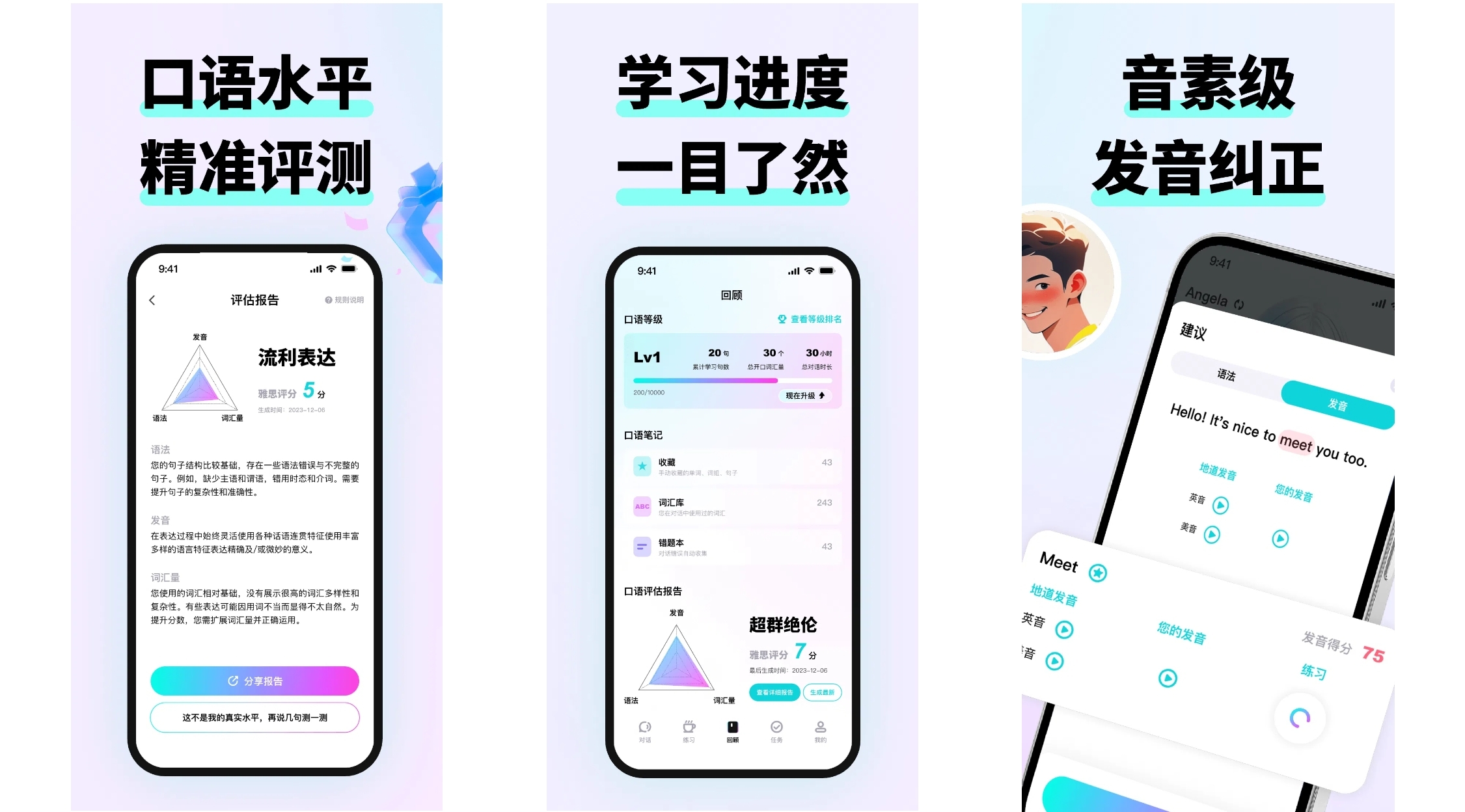 学为贵在口语素材积累方面有不错的表现,提供了不少通用的口语模板和基础发音课程,适合口语基础特别薄弱的同学做入门练习。但缺点是智能交互体验一般,没有针对考研复试的专业场景训练,也没办法做实时纠错,更适合用来积累基础语料。