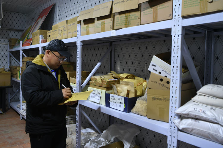 3月22日,在廊坊市盛农农业发展有限公司,公司负责人李静海盘点甜瓜种子库存。王龙霄摄