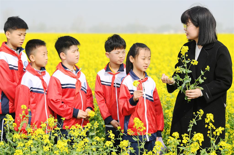 组织学生走进油菜花田
